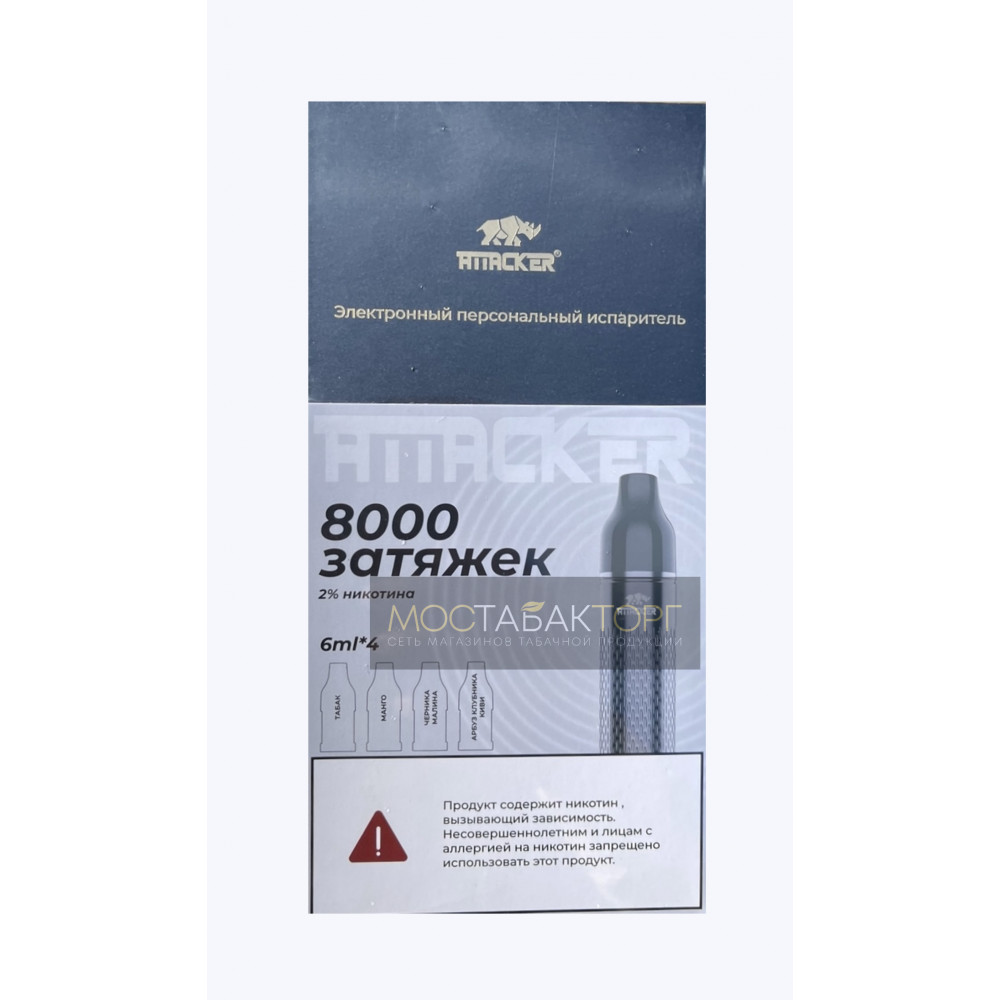 Набор Attacker K-One 8000 Серый (вкусы: Табак, Манго, Черника Малина, Арбуз Клубника Киви)